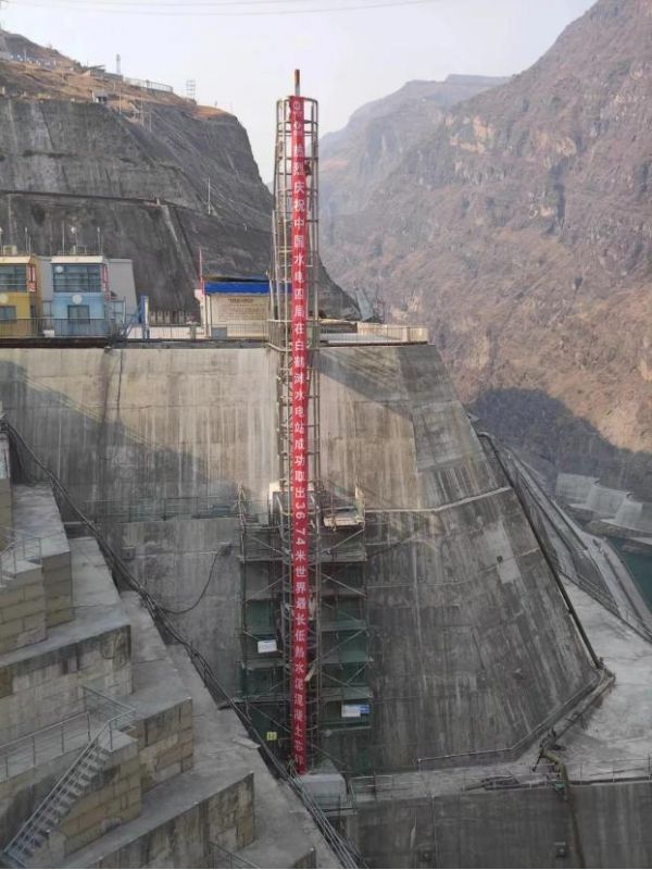 2023年4月12日,白鶴灘水電站左岸11號壩段使用中地裝重探公司研制的GQ-60型工程鉆機取出長36.74米、直徑245毫米低熱混凝土芯樣,這是繼白鶴灘大壩2019年取出25.7米長芯,2022年取出34.86米長芯之后,再次打破世界最長常態(tài)混凝土芯樣紀錄。